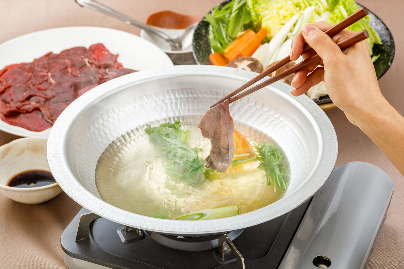 お湯や、昆布などでだしを摂ったスープで、軽くしゃぶしゃぶして、ポン酢やごまだれなど、お好みの味付けでお楽しみ下さい。臭みがないので、一般的な豚肉しゃぶしゃぶ同様の感覚でお召し上がり頂けます。お好みの野菜を適量入れてお召し上がり頂くのもおすすめです!